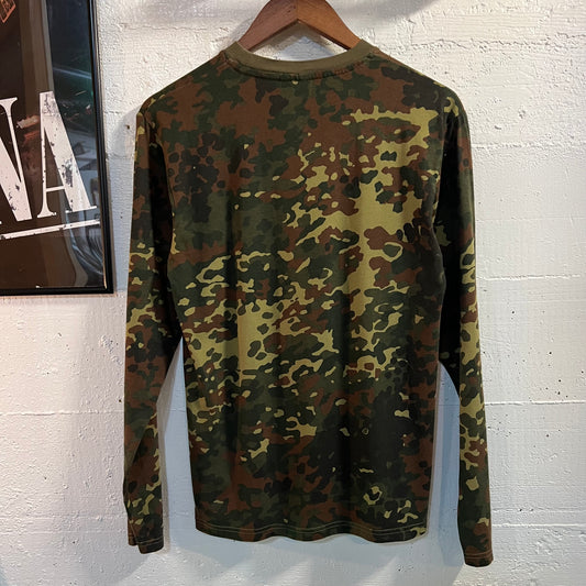 German Mil-Tec Flecktarn Camouflage Long Sleeve Shirt - Size Medium - 100% Cotton - Olive/Beige/Brown