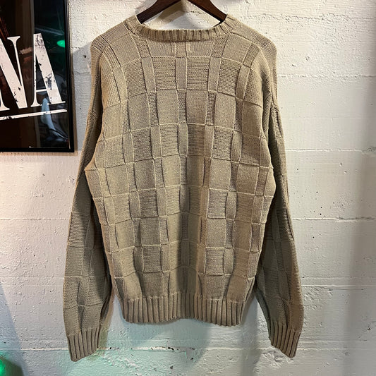 Vintage 80’s GAP Checkerboard Knitted Heavyweight Sweater - Size XL - Tan