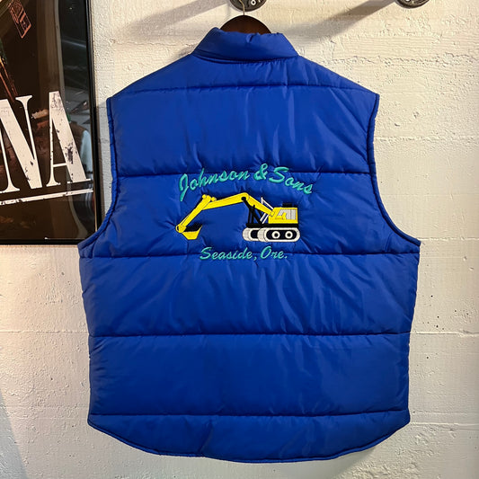 Vintage 80’s King Louie Pro Fit Embroidered Satin Bomber Snap Button Vest - Size XL - Made In USA - Blue/Multi