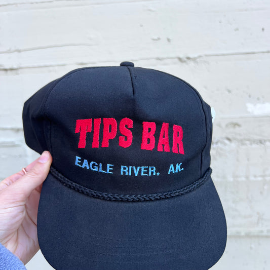 Vintage 90's Tips Bar 'Eagle River, Alaska' Embroidered Snapback Hat - O/S - Black/Red/Blue
