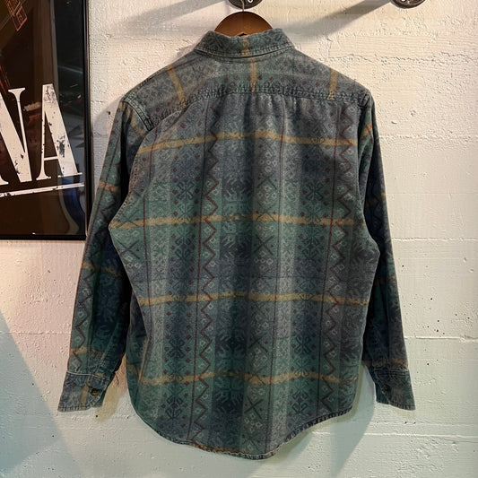 Vintage 90's Women's L.L. Bean Abstract Nordic Print Brushed Cotton Flannel Shirt - Size Medium - Made In USA - Multicolor