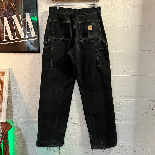 Vintage Carhartt Distressed Double Knee Duck Canvas Pants - Size 30 x 32 - Union Made In Made In USA - B01-BLK