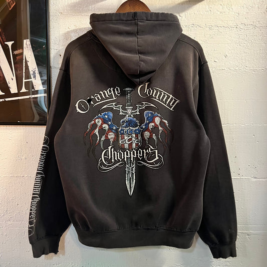 Vintage 2000's Distressed Orange County Choppers (OCC) Pullover Hoodie - Size Medium - Faded Black
