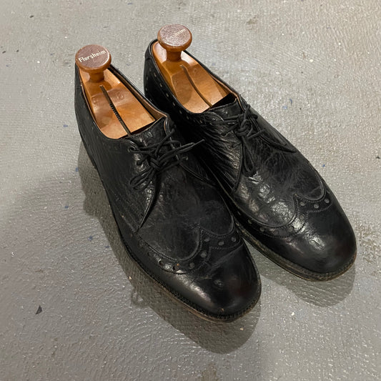 Vintage Allen Edmonds Nassau Ostendo Black Sharkskin Oxford Wingtip Shoe Made In USA Sz 9.5
