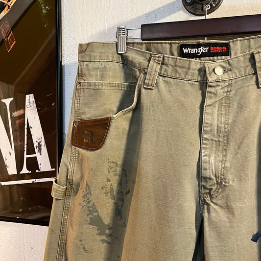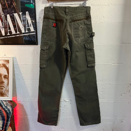 Vintage Distressed Wrangler Riggs Workwear Cargo Pants - Size 36x30 - Khaki Green