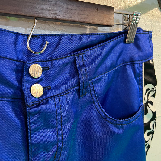 Vintage LBZ Local Boyz Hawaiian Flower Motocross Satin Nylon Pants - Size 11 (35"x34" ) - Made In USA - Royal Blue