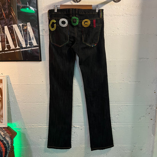 Vintage Y2K Coogi Embroidered Dark Wash Slim Fit Denim Jeans - Size 32"x 35" - Dark Raw Indigo/Multi