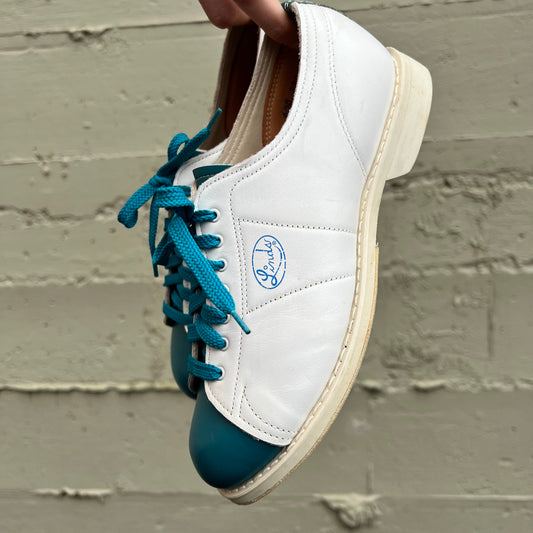 Vintage Linds 2-Tone Leather Lace Up Bowling Shoes - Size 6.5W/5M - Made In USA - Blue/White