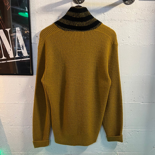 True Vintage 1950's Penney’s Towncraft Lambs Wool Large Shawl Collar Waffle Knit Sweater - Size Large - Mill 8244 - Mustard Yellow/Black
