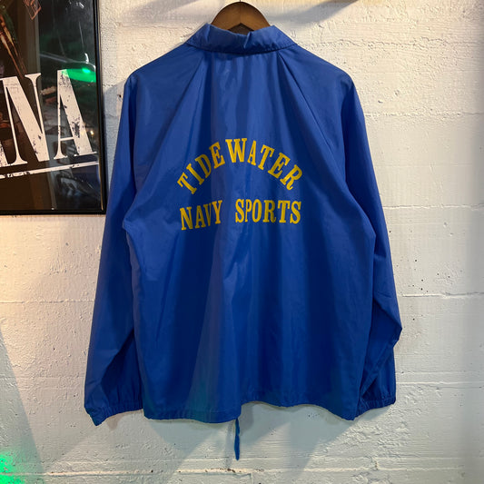 Vintage 80's Tidewater Navy Sports Printed Coaches Snap Jacket - Size Large - Made In USA - Blue/Yellow