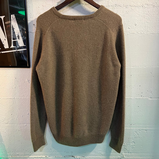 Vintage Norm Thompson Wool & Mink V Neck Sweater - Large - Made In England - Taupe