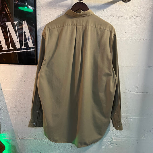 Vintage 90's Polo Ralph Lauren Royal Crest Button Up Khaki Shirt - Size Large - Tan/Khaki