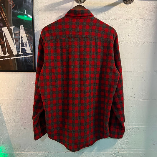 Vintage 80's Norwester Plaid Wool Flannel Shirt - Size Large - Red/Gray