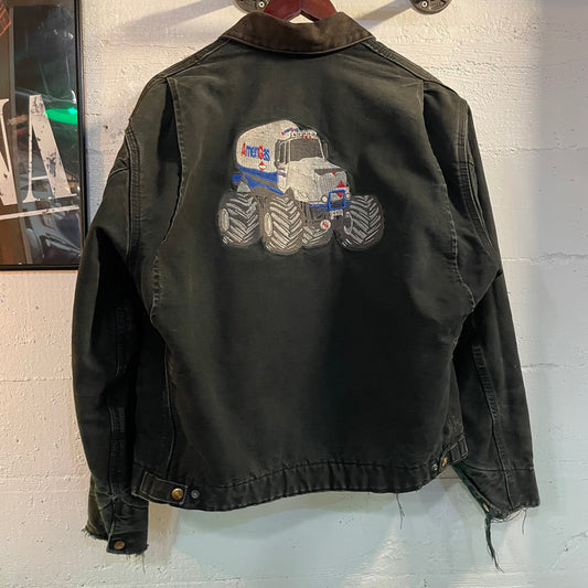 Vintage 2000's Distressed Embroidered Carhartt Detroit Blanket Lined Jacket - Size Large - Black - J01-BLK