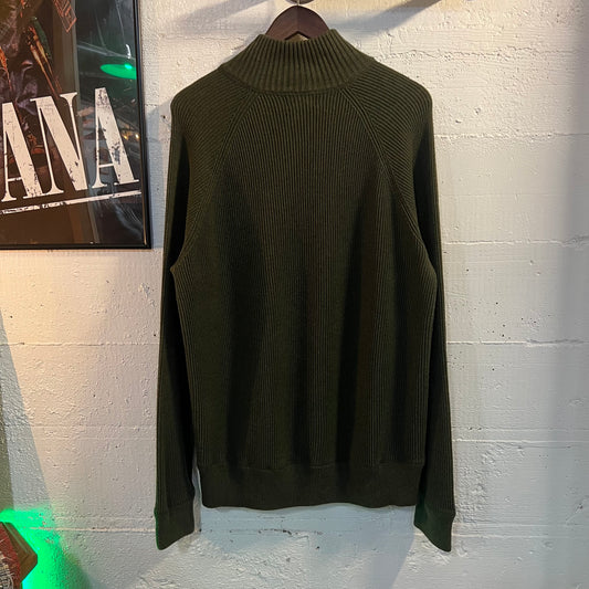 Vintage Polo Jeans Standard Issue Military Style Ribbed Knit 1/4 Zip Sweater - Size Large - Forest Green