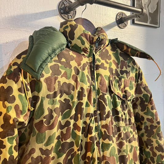 Vintage 60's/70's Herter's Hudson Bay Frog Camo Down Puffer Zip-Up Jacket - Size Medium - Earth Toned