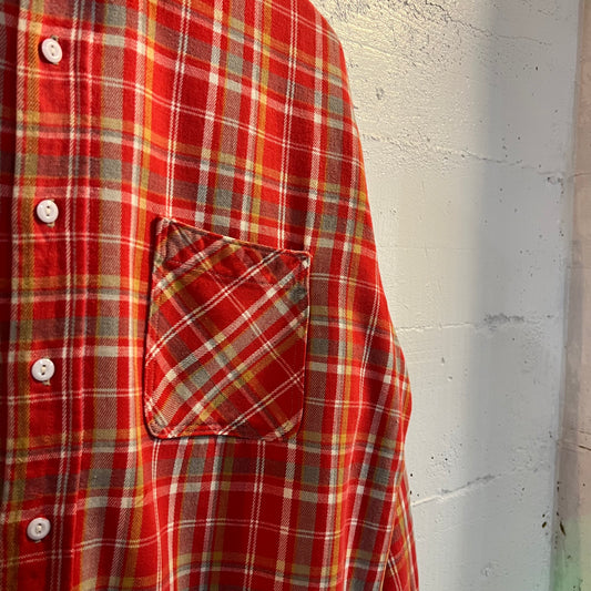 Vintage 1970's JCPenney Big Mac Plaid Flannel Shirt - Size XL - Made In USA - Red/Yellow