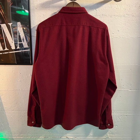 Vintage 1980's Five Brother Solid Color Chamois Cloth Button Up Shirt - Size Large (Tall) - Made In USA - Bordeaux