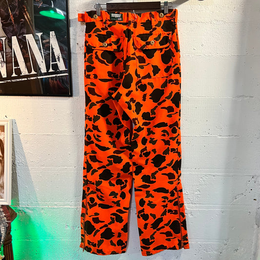 Vintage 1980's Saf-T-Bak Blaze Orange Duck Camo Pants - Size M (29"-32" Waist) - Made In USA - Blaze Orange