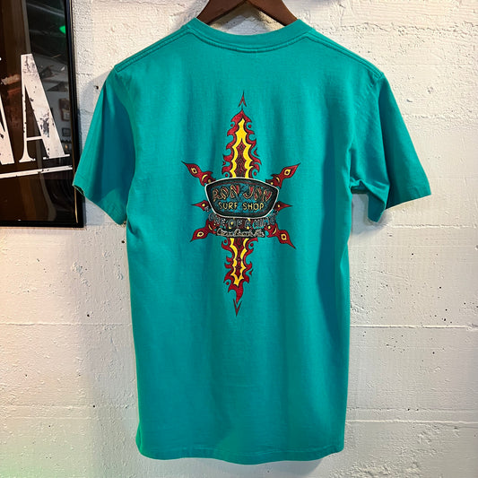 Vintage 80's Ron Jon Surf Shop Cocoa Beach Single Stitch Tribal T-Shirt - Size Medium - Made In USA - Turquoise