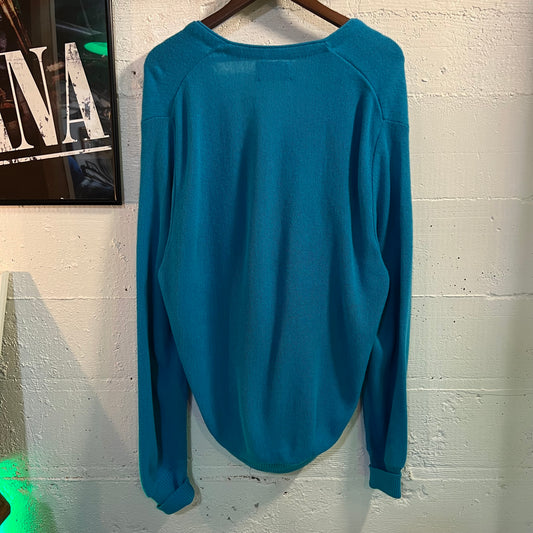 Vintage 60’s/70’s Arnold Palmer ‘Signature Collection’ Knit Cardigan Sweater - Size Medium - Made In USA - Bright Blue