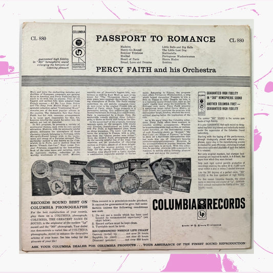 Vintage 1956 Percy Faith And His Orchestra 'Passport To Romance' LP Vinyl Record