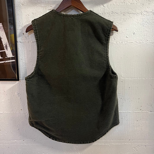 Vintage Union Made Carhartt Sherpa Lined Fleece Work Vest - Size Small - Made In USA - Moss Green - V13MOS