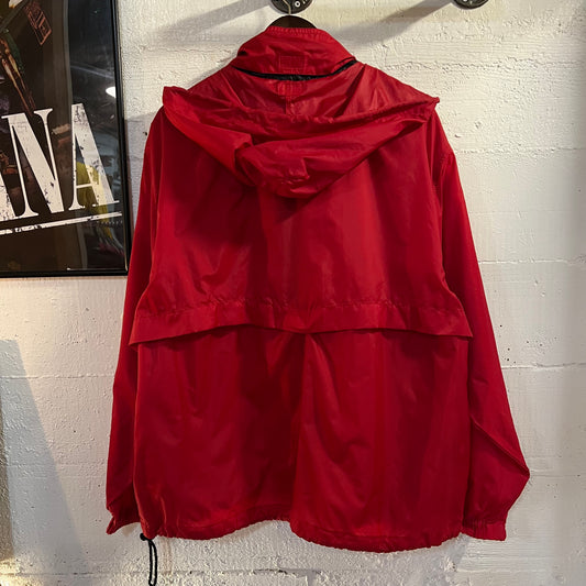 Vintage 90's Eddie Bauer Ebtek Nylon Hooded Windbreaker Jacket - Size Large - Red/Black