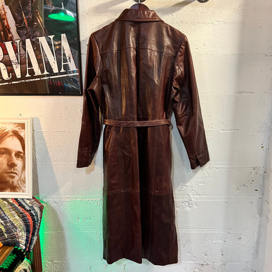 Vintage Maxima By Wilsons Belted Leather Oxblood Long Leather Trench Coat - Size Medium - Oxblood