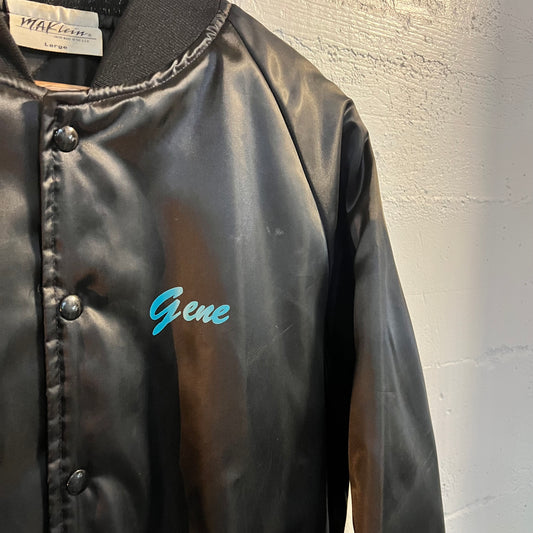 Vintage 1980's Union Made Satin Bomber Jacket - Size Large - Made In USA - Black/Turquoise