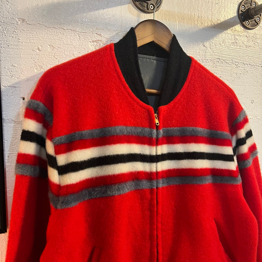 Vintage 1940's Striped Mohair Wool Bomber Jacket - Size Large - Made In USA - Talon Zipper