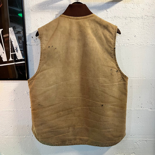 Vintage Distressed Carhartt Canvas Zip Up Vest - Size Medium - Tan/Brown
