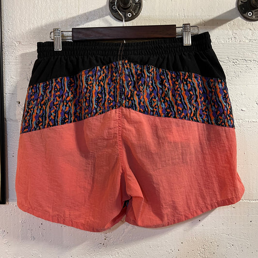 Vintage 80’s Saturday Sun Company Fun Patterned Swim Shorts - Size Medium - Multicolor Neon/Black/Pink