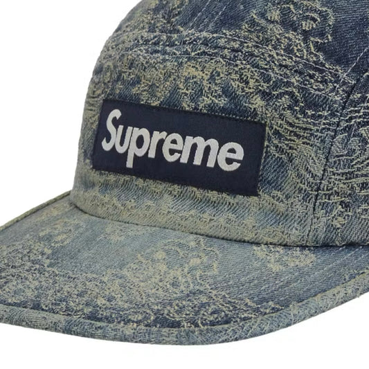 *New* Supreme Jacquard Denim Bandana Camp Cap - O/S - Dirty Indigo - Made In USA - SS25