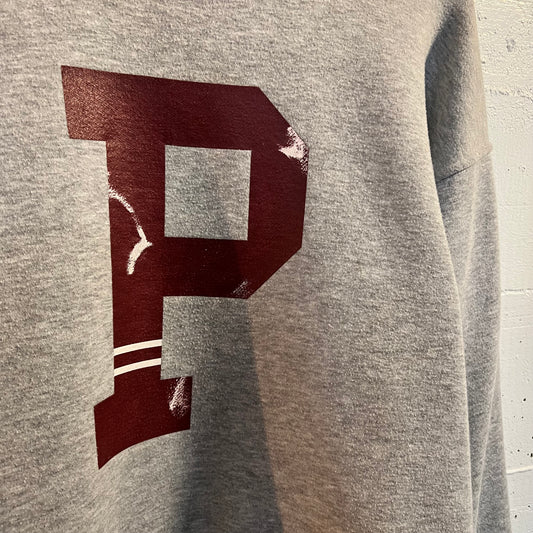 Vintage Distressed Collegiate ‘P’ Crewneck Sweatshirt - Size 2XL - Made In USA - Grey/Maroon