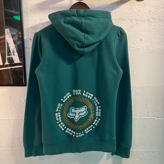 Vintage 2000's Y2K Fox Racing Girls 'You Love Fox' Zip-Up Sweatshirt - Size Large - Teal/White