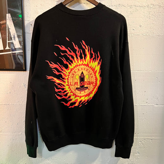 Vintage Distressed L.A. Gear Fire Crewneck Sweatshirt - Size Large - Made In USA - Black/Red/Yellow/Orange