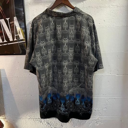Vintage Y2K ODO Tribal Dragon All Over Print Camp Shirt - Size XL - Gray/Blue/Black