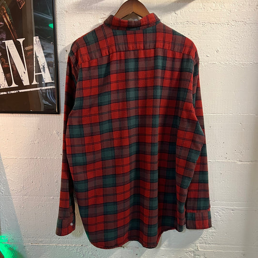 Vintage 90's L.L. Bean Plaid Button Up Flannel - Size XL - Made In USA - Red/Green