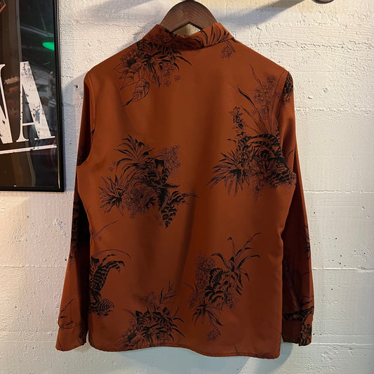 Vintage 1970's Alex Colman Floral Print Button Up Shirt - Size Medium - Burnt-Orange/Black