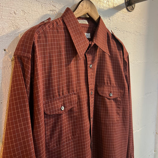 Vintage Christian Dior Utility Button Down Plaid Shirt - Size XL - Maroon