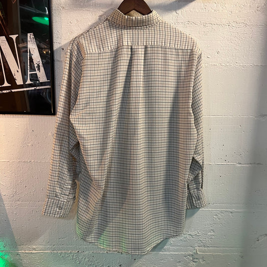 Vintage L.L. Bean Gingham Plaid Long Sleeve Button Down Oxford Shirt - Size Large - Made In USA - White-Off White-Green