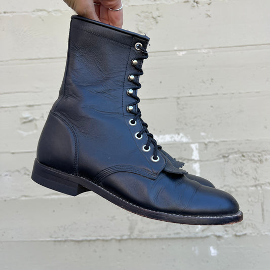 Vintage Justin's 506 McKean Lace Up Roper Kiltie Leather Boots - Size 6.5C (Narrow) - Black Leather