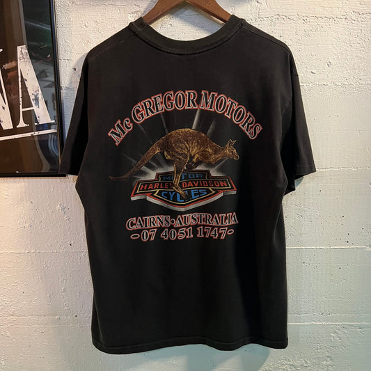 Vintage 90’s Australia Harley Davidson ‘Mc Gregor Motors’ Single Stitch T-Shirt - Size Large - Made In Australia - Black/Multicolor