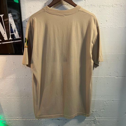 Vintage Football 'Play Hard Or Go Home' T-Shirt - Size XL - Made In USA - Tan/Green/Yellow