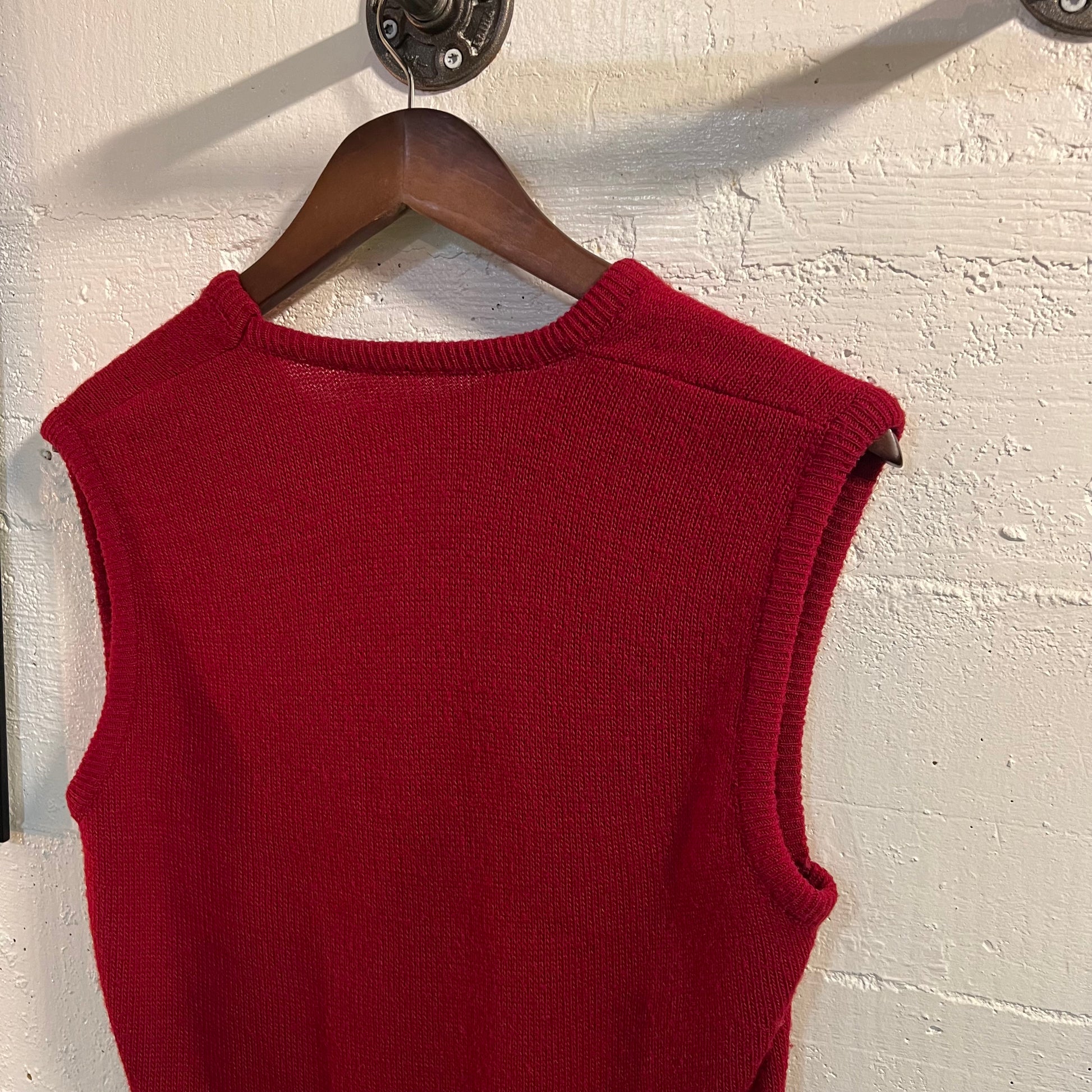 True Vintage 100% Acrylic Knitted Sweater Vest - Size Medium - Made In USA/Union Made - Red