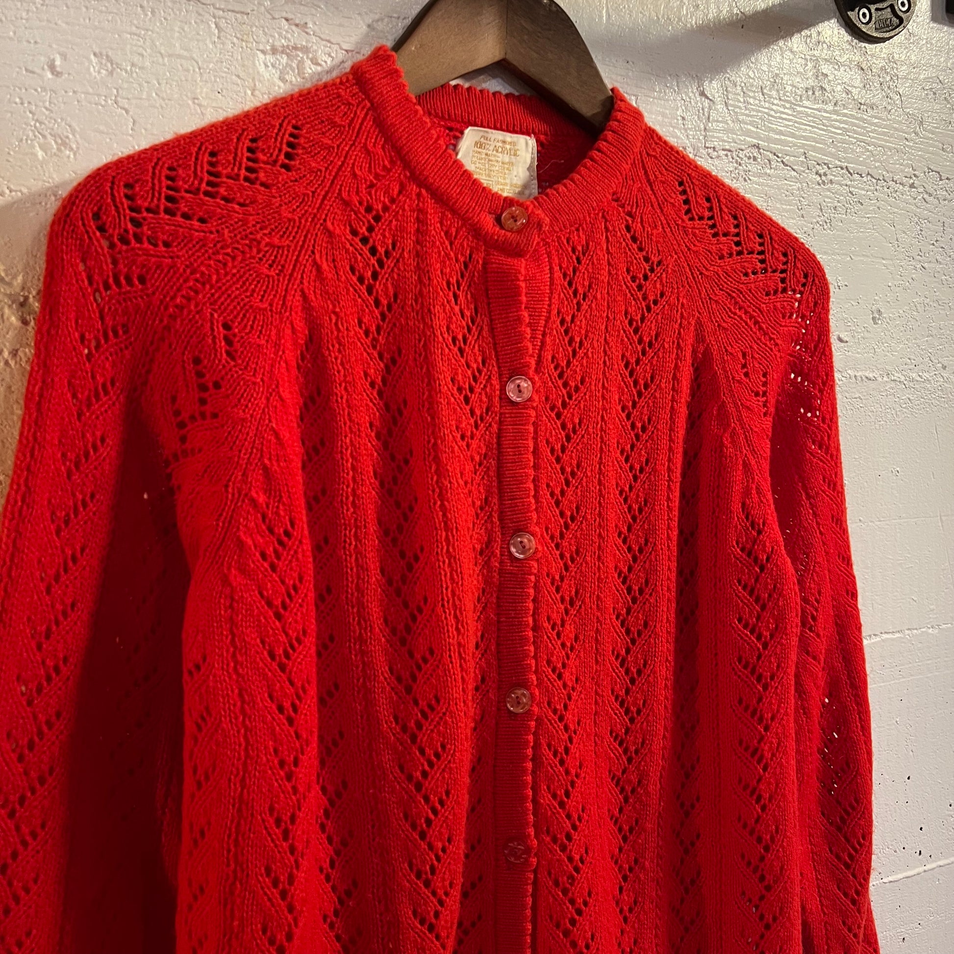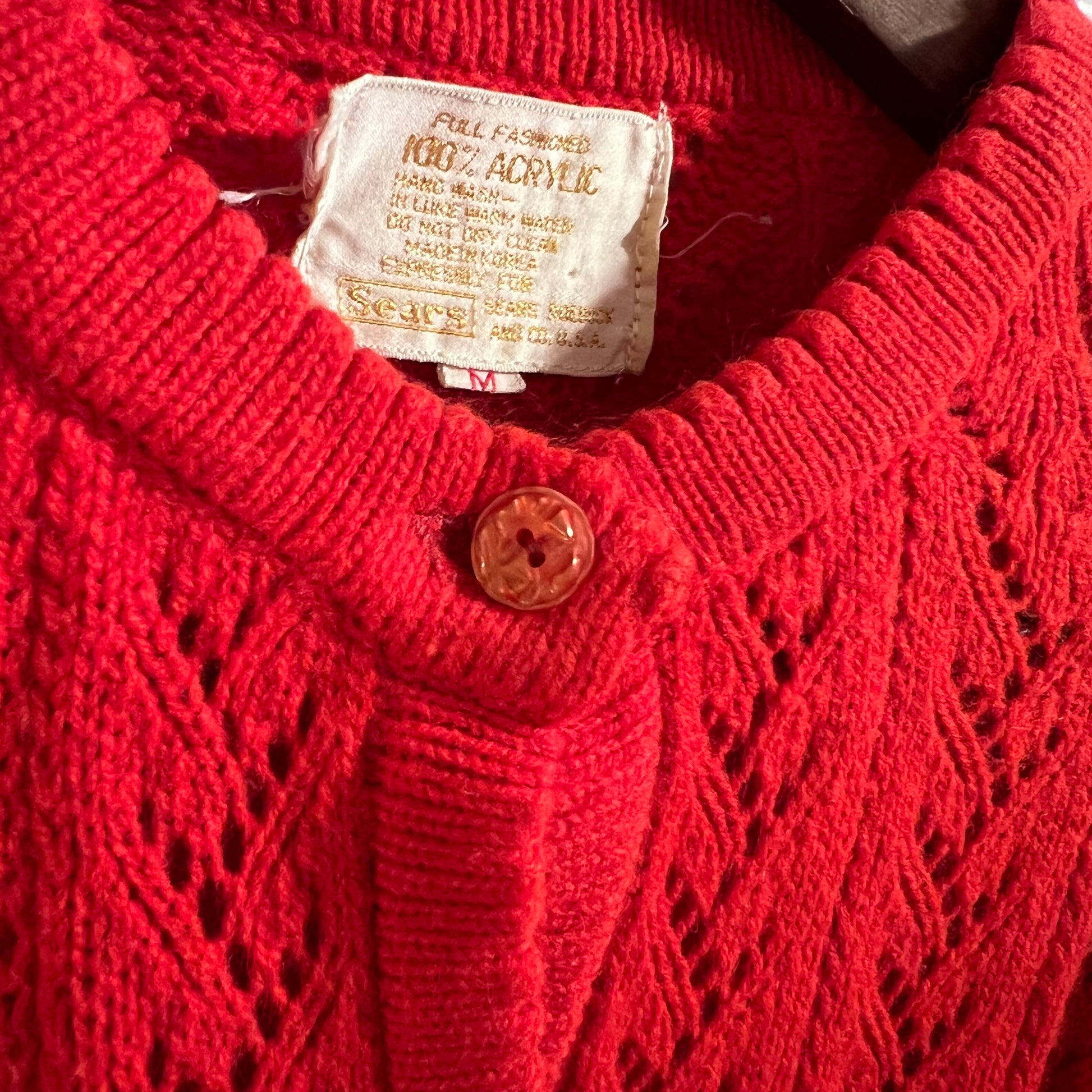 Vintage 1960's Sears Knit Acrylic Cardigan Sweater - Size Medium - Red
