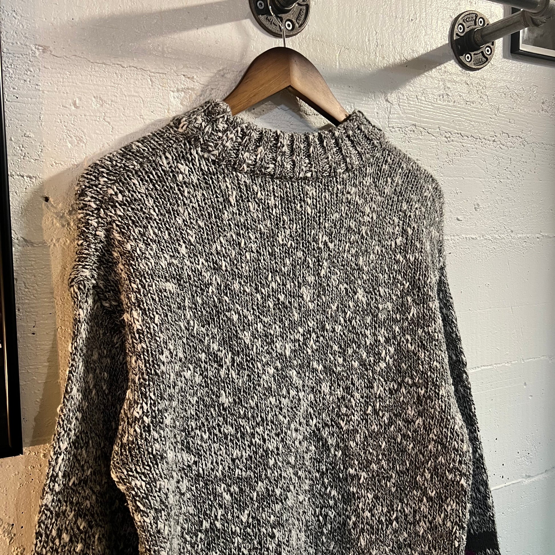 Vintage 1980's Southwestern Intarsia Pattern Knit Crewneck Sweater - Size Medium - Salt & Pepper/Multi