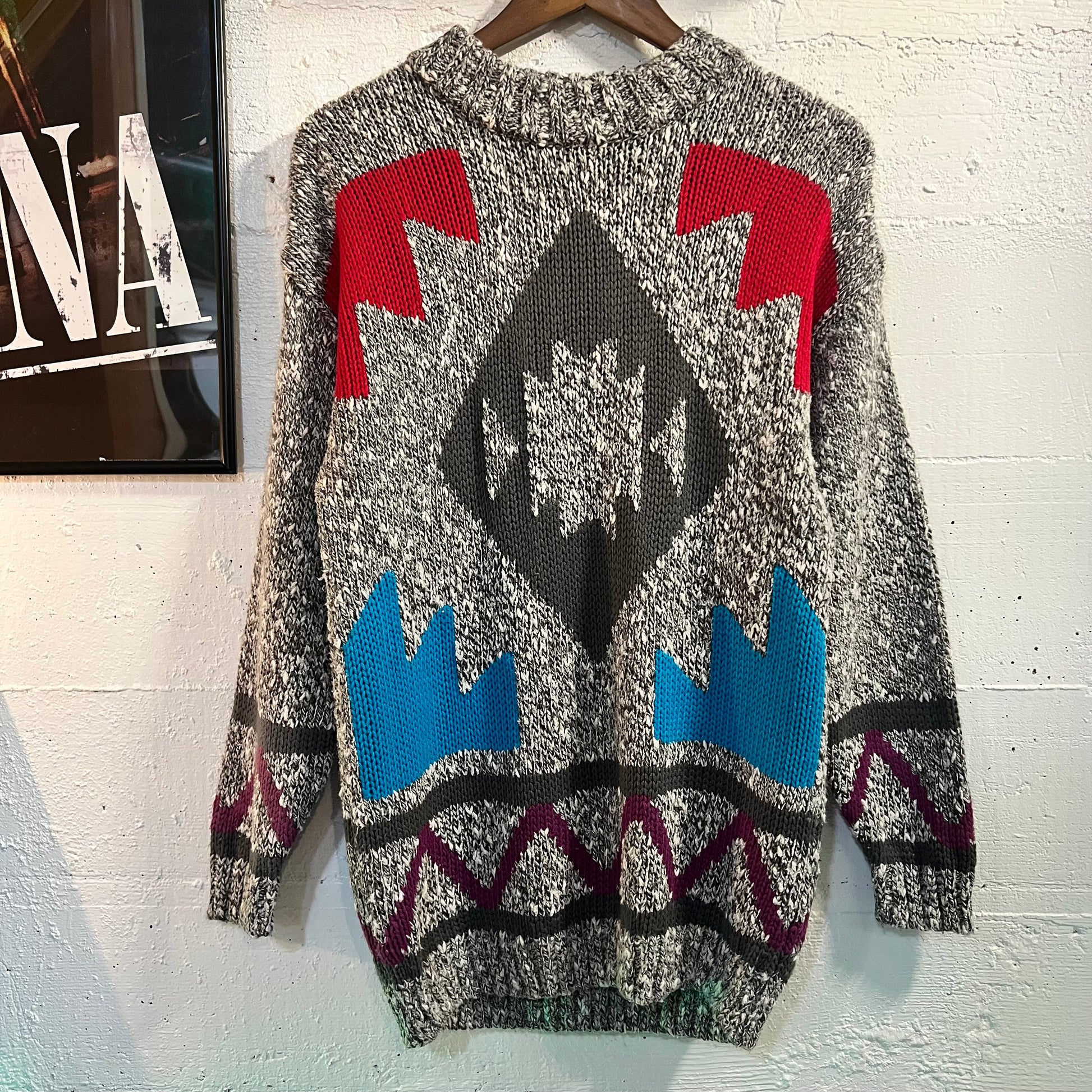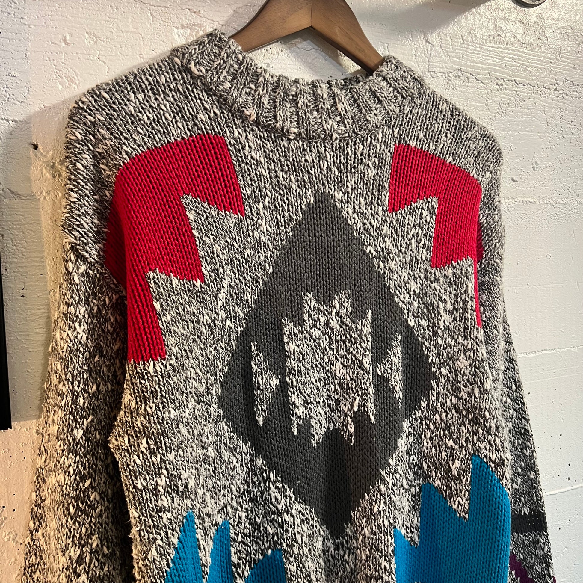 Vintage 1980's Southwestern Intarsia Pattern Knit Crewneck Sweater