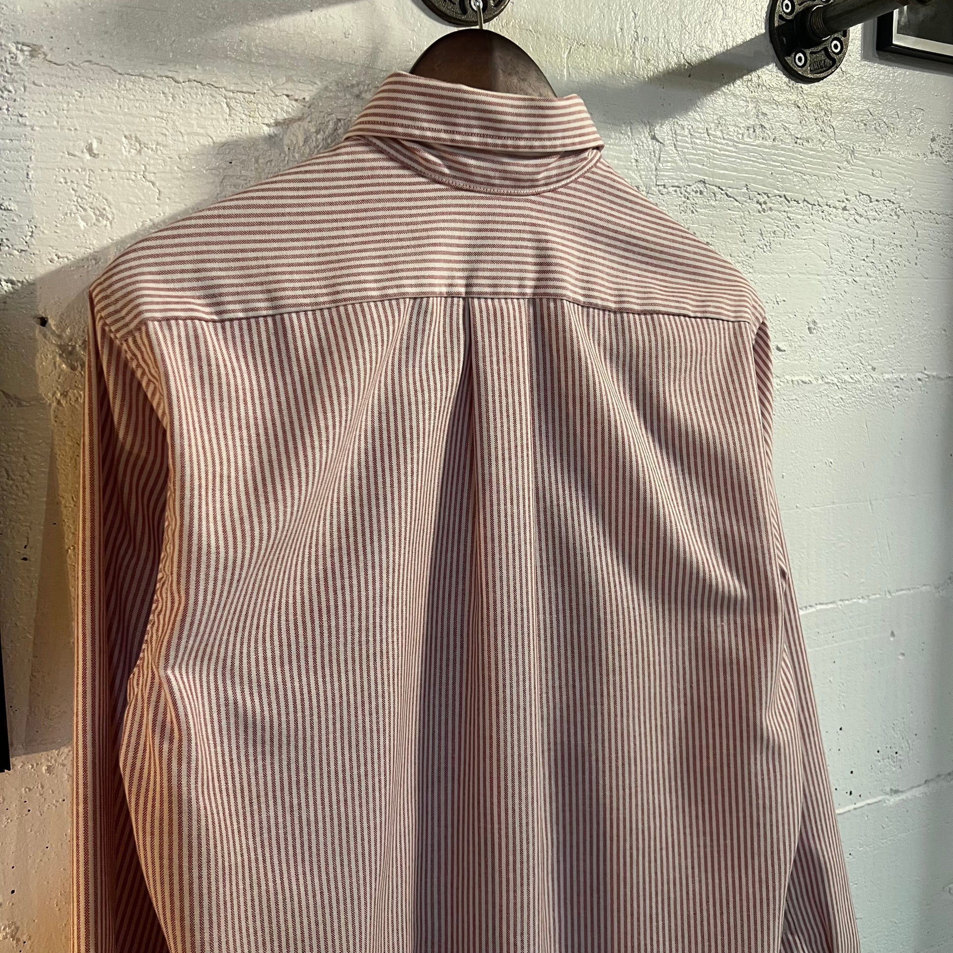 Vintage 417 By Van Heusen Pinstripe Button Down Oxford Shirt - Size 15-1/2 (32/33) - Made In USA - Red/White